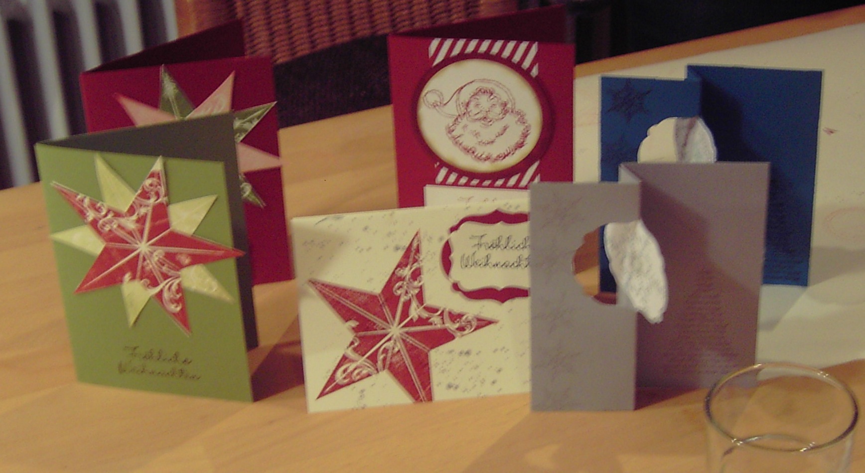es wurde fleißig gebastelt. Und diesmal habe ich auch an Bilder gedacht. Meine heutigen Karten sind ganz dem Schnee gewidmet.