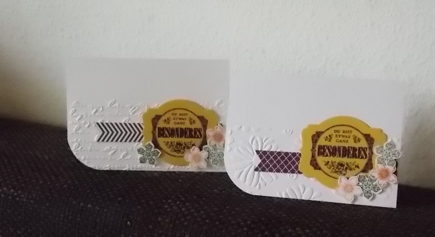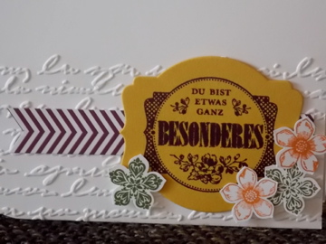 Die Blumenprägung ist ja immer ganz schön. Nur leider wird am Rand die Prägung so abgehakt. Bei einer ganzen Karte ist das ja okay, aber so ein bisschen stört mich das ja bei dieser Karte.