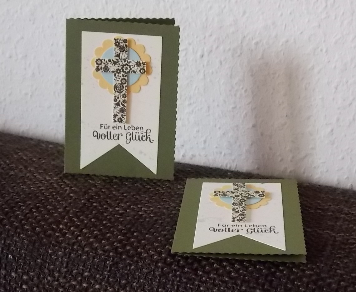 das Stempelset „Gesegnet“ ist super. Ich mag die zwei Kreuze und auch die Sprüche sind alle zu gebrauchen. Oft habe ich das Problem, dass ich nur ein Teil des Stempelsets wirklich benutze.