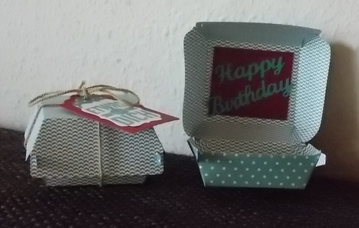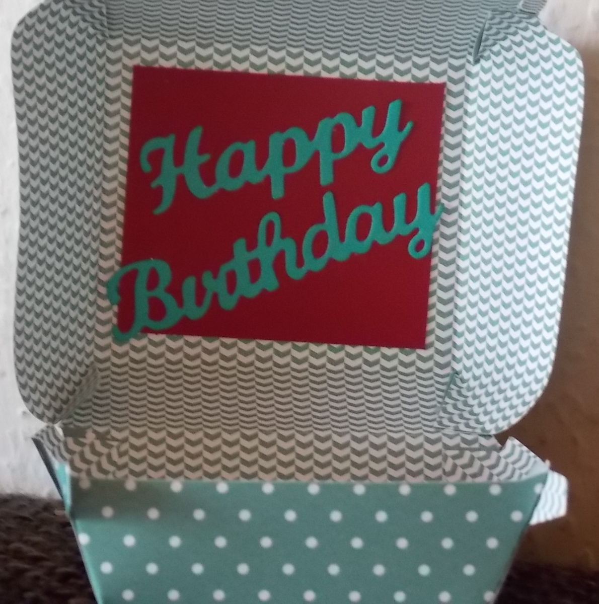 Aber zurück zu meinem Auftrag eine Geburtstagskarte zu zaubern. Kurzerhand habe ich die Auftraggeberin kontaktiert ob es auch eine Schachtel sein darf und schwups die wups war der Auftrag fertig. Und in der Schachtel ist genug Platz um noch einen Gruß hineinzulegen bzw. ein bisschen Bares.