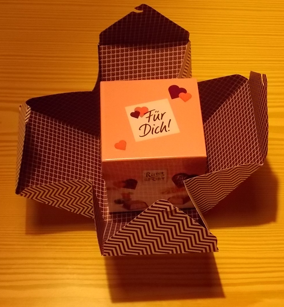 Genau, eine Schoki-Box von der quadratischen Schokolade.