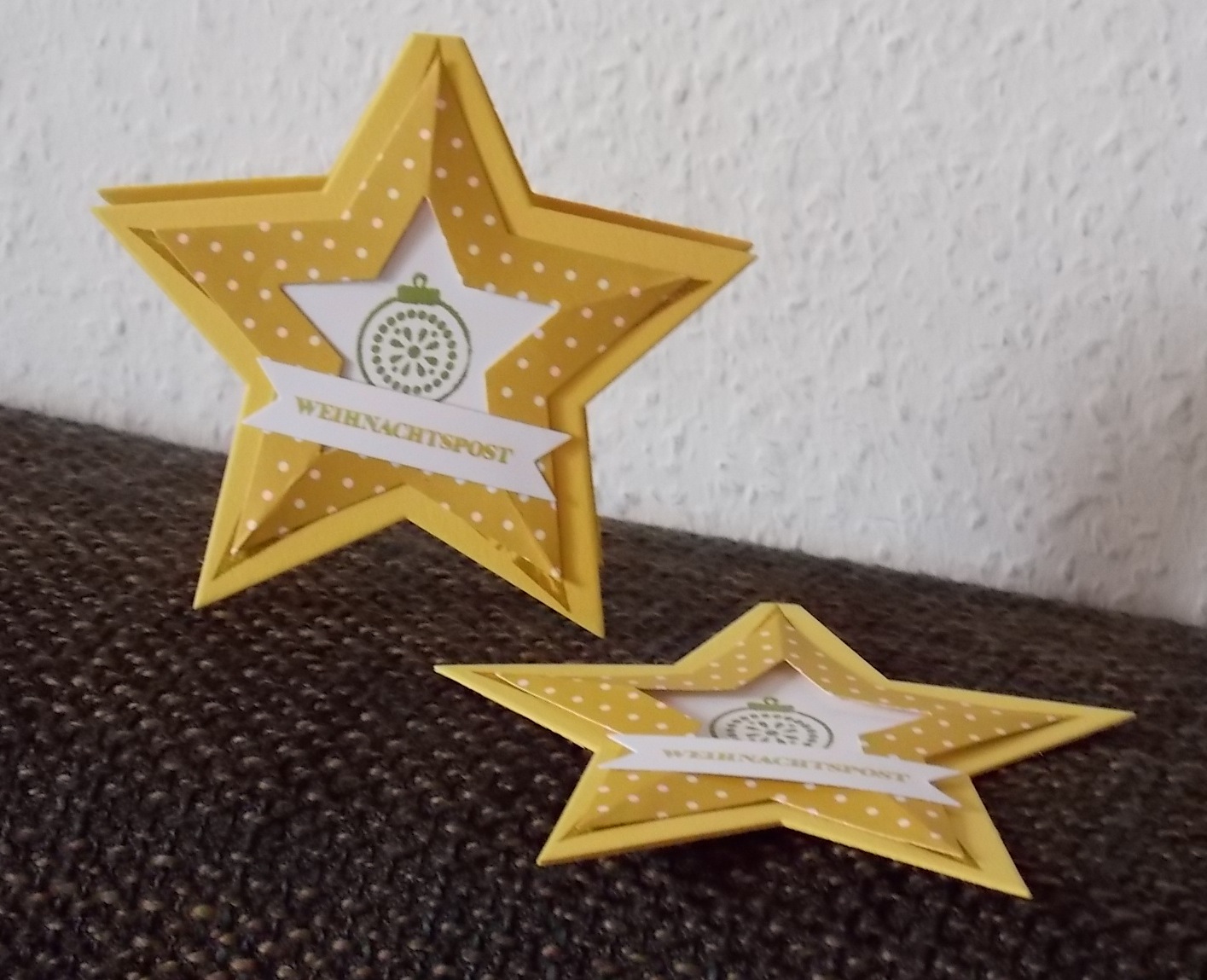 wunderschöne Karten hast du gemacht, dass Du den oberen Stern noch ein wenig gefalzt hast, gefällt mir sehr gut und wirkt sehr plastisch…