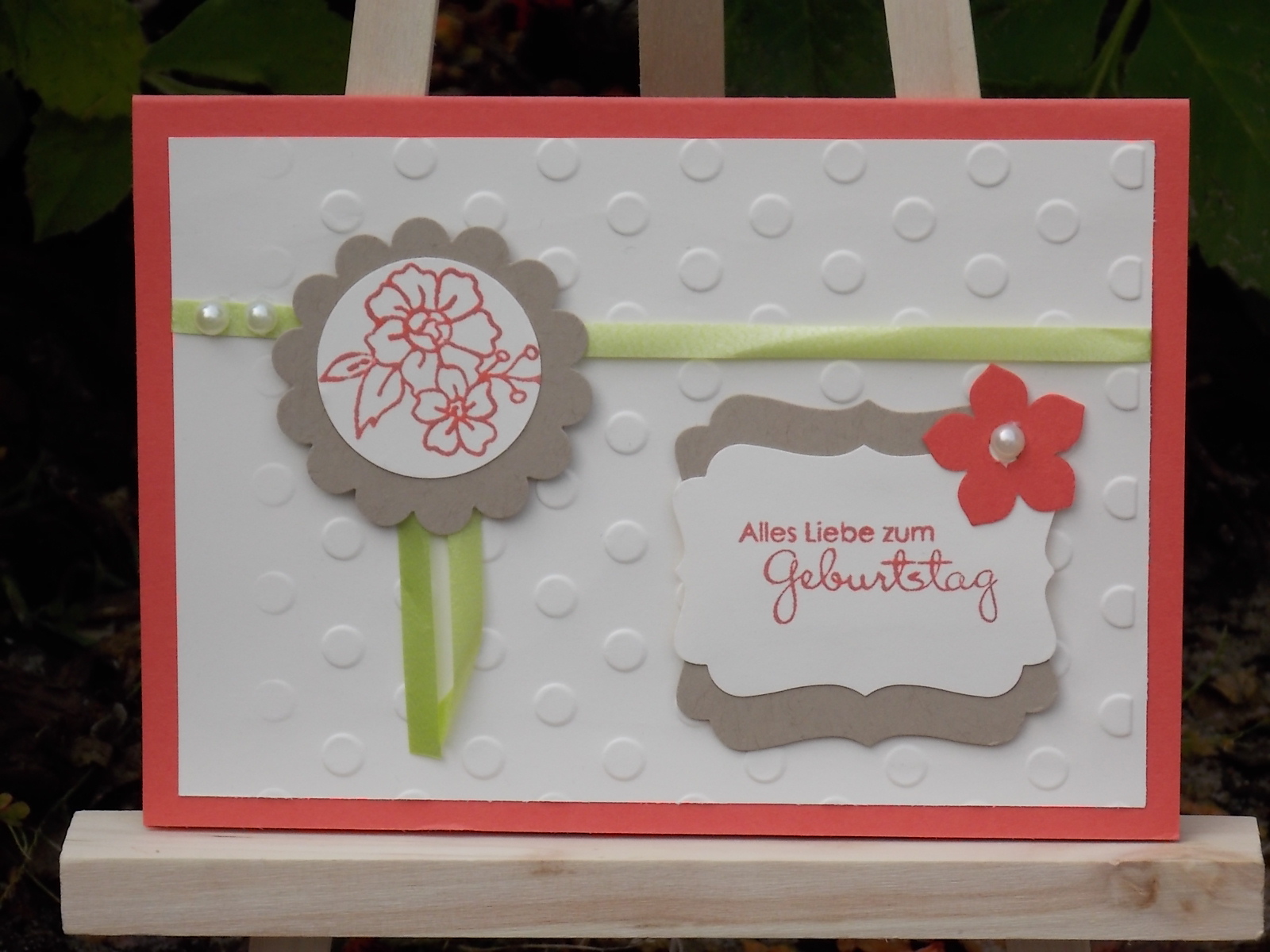 Um euch nicht weiter mit diesem Karten-Sketch zu langweilen habe ich heute die letzten beiden Prägungen (Ranke und Punkte). Man kann gar nicht genug verschiedene Prägefolder haben. So langsam aber sicher brauche ich eine größere Box.