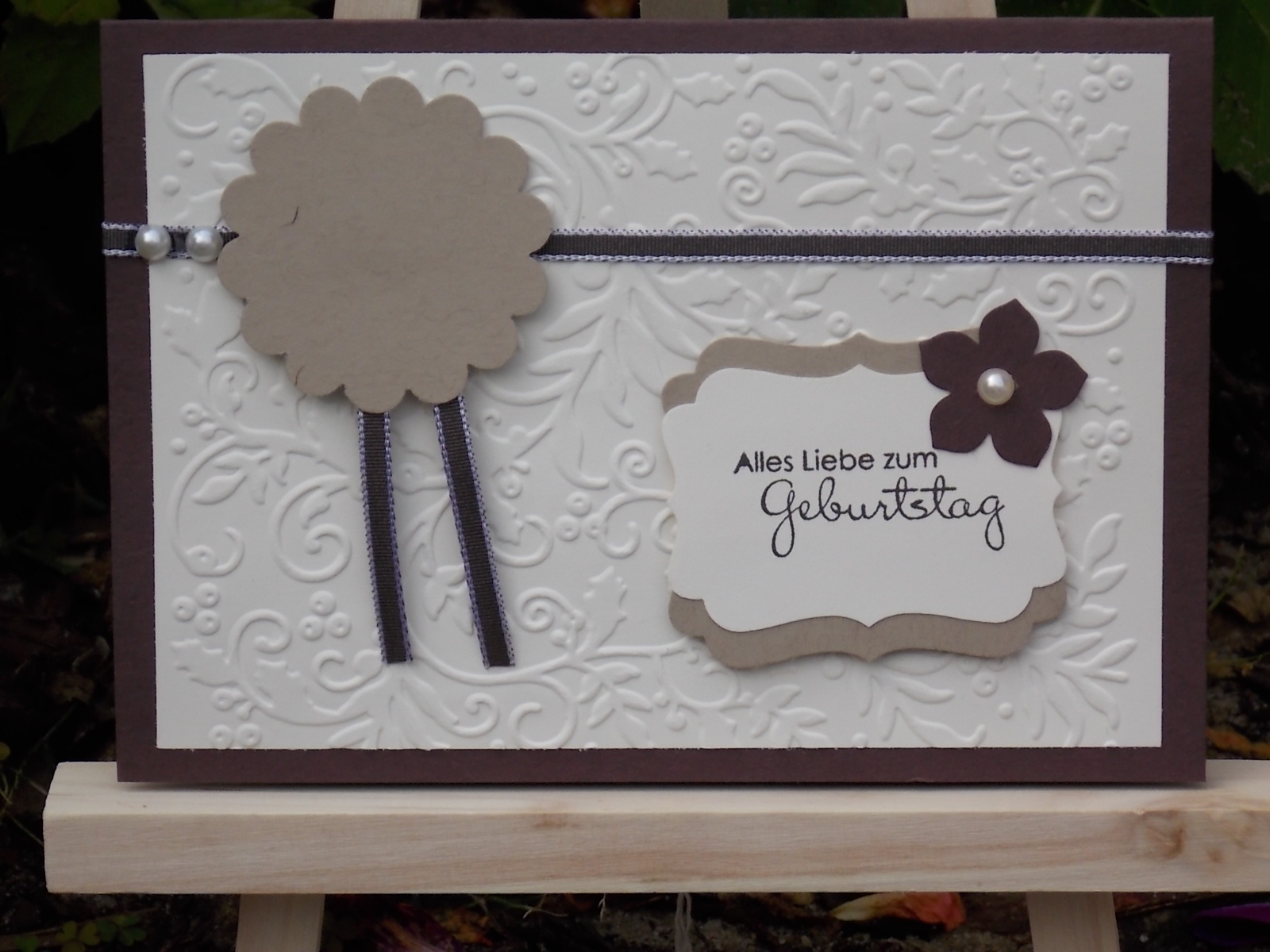 Anlass meiner ganzen Geburtstagskarten Aktion war der Auftrag einer Karte zum doppelte 60. Geburtstag. Die Ziffern habe ich in Espresso fein säuberlich ausgeschnitten. Um den Auftrag so gut wie möglich zu erfüllen. Jetzt brauche ich dringend eine Zahlen Stanze oder aber etwas noch viel besseres ;-) Aber dafür muss ich erst mal etwas sparen. Vielleicht kann ich mir ja eine Cameo zu Weihnachten schenken.