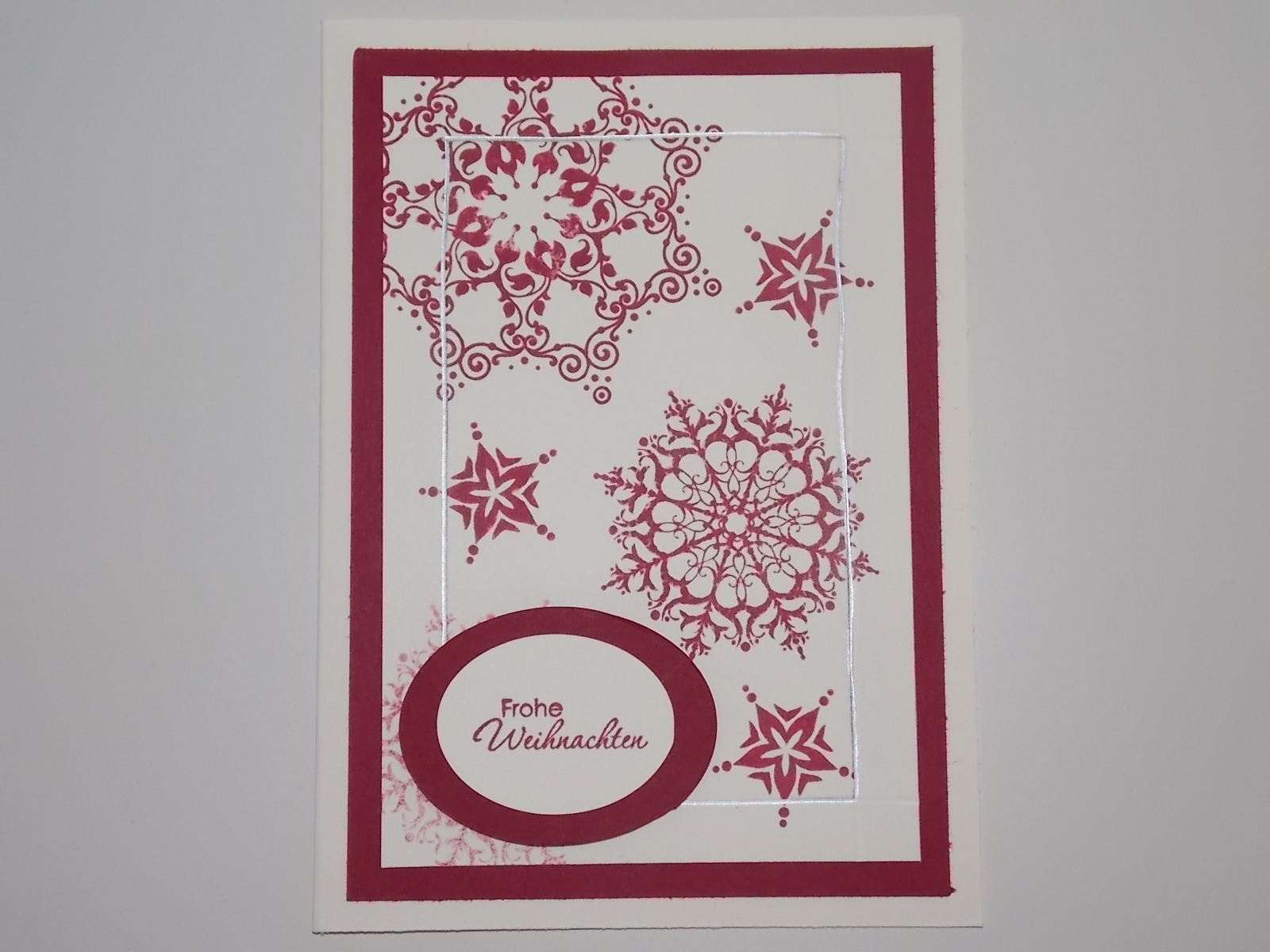 Chili ist die ultimative Weihnachtsfarbe wie ich finde. Und die beiden Sets „Winterzauber“ und „Wunder der Weihnacht“  machen einfach einen schönen Hintergrund für eine schnelle Weihnachtskarte.