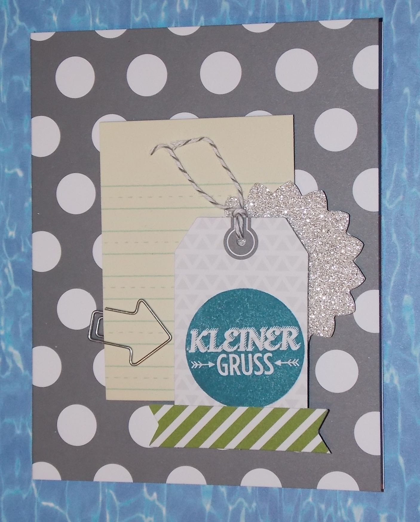 Ich finde ja, man darf auch einfach mal ohne Anlass eine Karte verschicken. Da passt der heutige Stempel „Kleiner Gruss“ ganz gut.