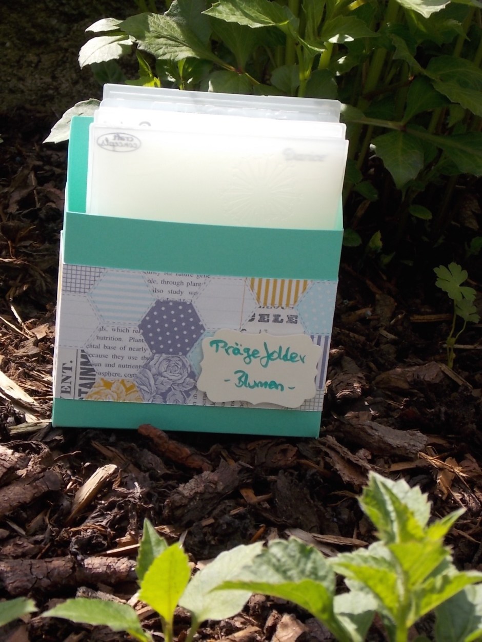 Und nun habe ich endlich mal Zeit gefunden meine Prägefolder etwas zu sortieren. Ich habe dann auch sprichwörtlich gleich mehrere Fliegen mit einer Klappe geschlagen. Erstens wollte ich je eine Box haben für Weihnachten, Blumen, Muster und Diverse. Zweitens muss altes Papier, das nicht mehr im aktuellen Katalog ist aufgebraucht werden. Also sind meine Boxen in Jade gehalten mit passendem Designpapier.
