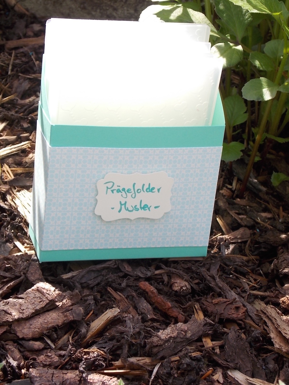 Und nun habe ich endlich mal Zeit gefunden meine Prägefolder etwas zu sortieren. Ich habe dann auch sprichwörtlich gleich mehrere Fliegen mit einer Klappe geschlagen. Erstens wollte ich je eine Box haben für Weihnachten, Blumen, Muster und Diverse. Zweitens muss altes Papier, das nicht mehr im aktuellen Katalog ist aufgebraucht werden. Also sind meine Boxen in Jade gehalten mit passendem Designpapier.