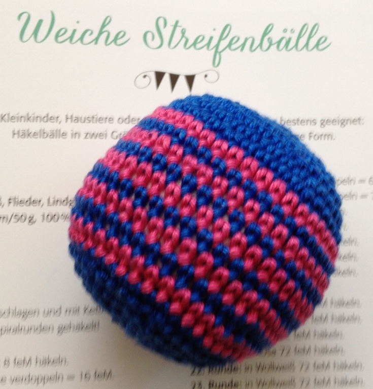 Eigentlich wollte ich euch die „Häkelmütze für Gross und Klein“ zeigen, doch habe ich gerade einfach nicht genug Zeit. Ich werde die später einmal ausprobieren. Ich habe mich dann an den „Weichen Streifenbällen“ versucht.