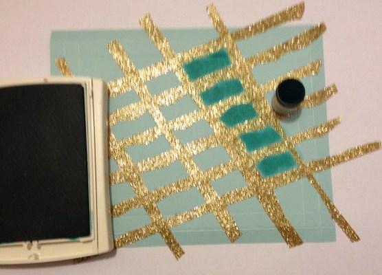 Raster Screen Technik mit SU Papier Aquamarin und Washi Tape