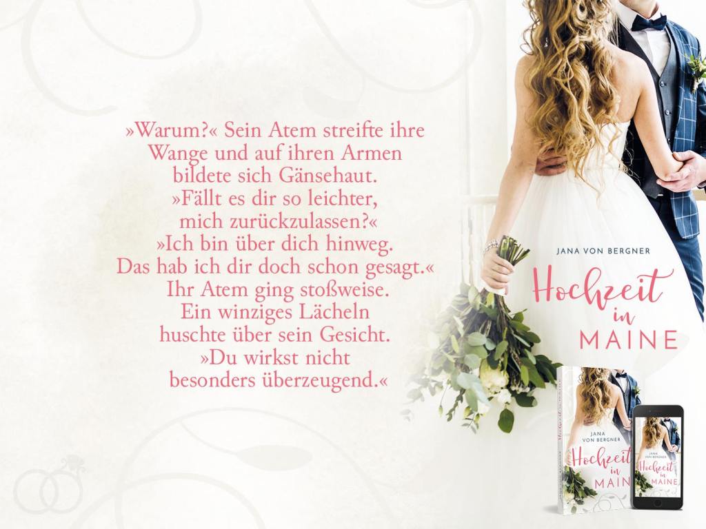 „Nie wieder will Amber in ihre Heimat Maine zurückkehren. Zu schmerzvoll sind die Erinnerungen an ihre dort verlorene Liebe. Doch als ihre beste Freundin Rachel sie bittet, ihre erste Brautjungfer zu werden, kann sie nicht ablehnen. Schließlich kennt sie den Bräutigam nur zu gut: Victor hat Mitschuld daran, dass Ambers eigene Hochzeit geplatzt ist. Nun muss sie verhindern, dass Rachel diesen herzlosen Karrieremenschen heiratet – selbst wenn es bedeutet, sich ihrer Vergangenheit zu stellen.“ (Quelle: Jana von Bergner)