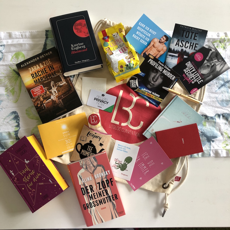 Als Besucher der LitBlog Convention bekam jeder einen kleinen gefüllten Rucksack geschenkt. Ich habe mir den Inhalt erst so richtig zu Hause angeschaut. Denn ich wollte ihn nicht den ganzen Tag mit mir herum tragen und so landete er direkt in meinem Kofferraum. So war am Abend zu Hause die Freude groß bei den tollen Büchern die ich darin fand.