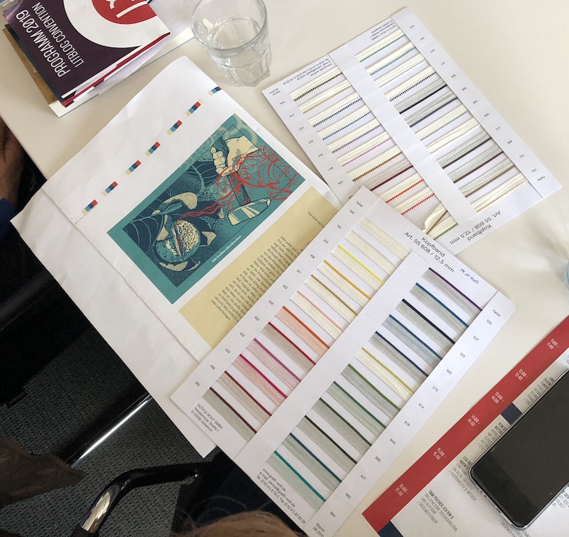 Mein erster Programmpunkt lautete: Blackbox Herstellung – Content rein, Buch raus, wie geht das überhaupt? mit Hanne Mandik von Kiepenheuer & Witsch. Spannend fand ich den Weg vom Manuskript zum fertigen Buch. Wie viel Zeit dafür benötigt wird. Besonders interessant war für mich die Entwicklung des Einbands. Welche Möglichkeiten es da gibt ist enorm. Wir durften selbst ein bisschen in den Farbpaletten stöbern. Einfach nur schön. Für mich war das ein toller Start in den LitBlog Tag.