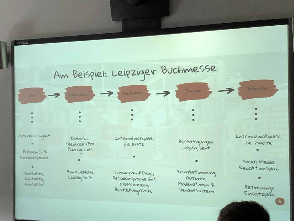 Programmpunkt zwei auf meiner Wunschliste handelte von der Organisation einer Buchmesse und wurde von Andrea von Droemer Knaur angeboten. Im Prinzip ist nach der Buchmesse, vor der Buchmesse und so weiter. Die Planung der einen startet am Tag, wenn die andere Endet. Schon interessant was da im Hintergrund passiert, damit es für die Besucher immer wieder neu und spannend wird. Ich selbst fahre 2020 das erste mal zur Buchmesse nach Leipzig. Ich freue mich schon total drauf.