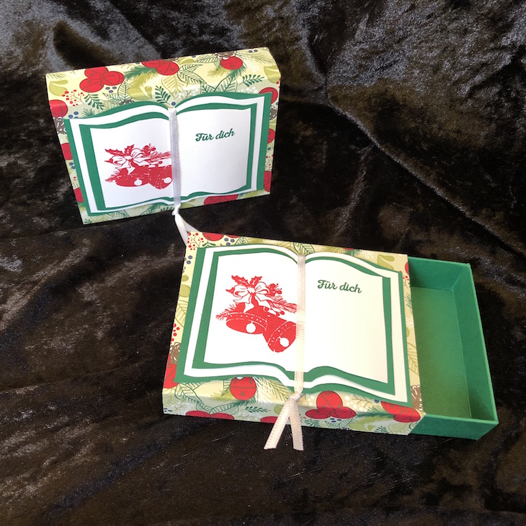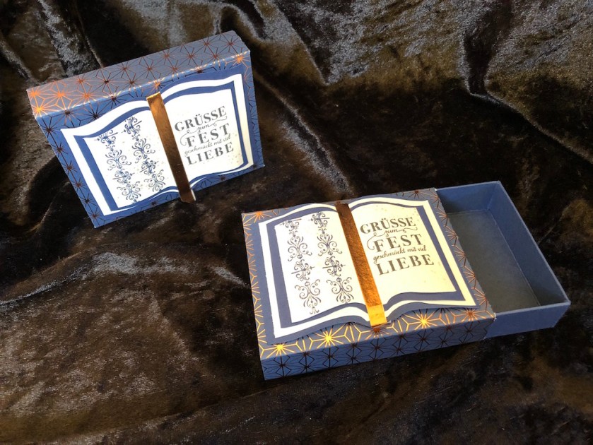 Heute zeige ich dir mein Projekt für Jever. Ich durfte direkt das zweite Projekt am Freitag Nachmittag anleiten. Mit im Gepäck hatte ich diese kleine Box in Buchoptik.