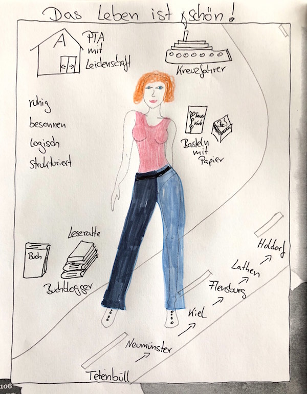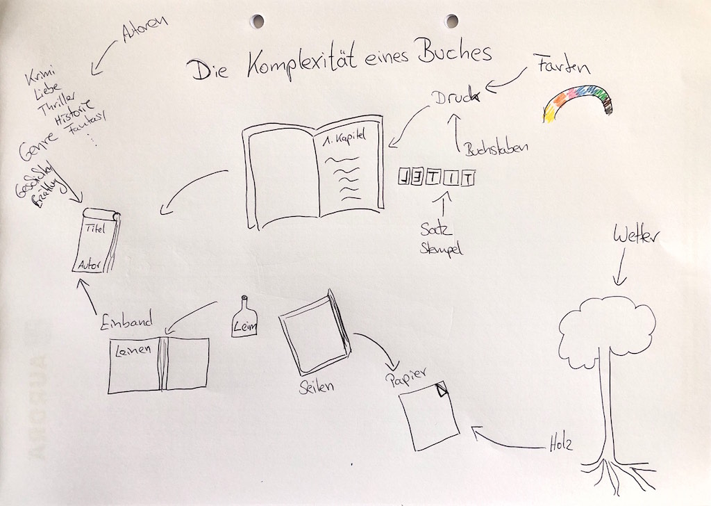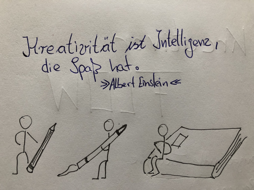 Wie auch zu meinen Romanen, habe ich ein kleines Sketchnote zum Buch gezeichnet. Heute darfst du dir mal im Zeitraffer ansehen, wie so ein Sketchnote bei mir entsteht. Dabei auch ganz wichtig, zeichne einfach kreuz und quer drauf los. Es muss nicht mit System und Ordnung gezeichnet werden. Und perfekt wird absolut überbewertet.