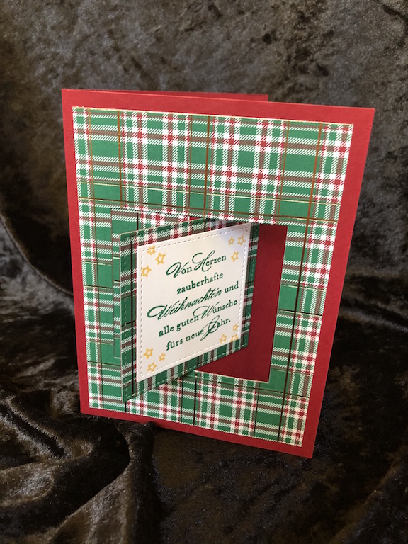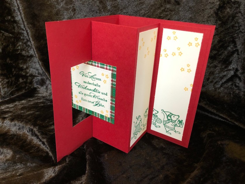 Dieses Jahr war mir mal nach etwas anderen Weihnachtskarten. Ein bisschen pep sollte dabei sein. Die Anleitung für die Pop-up-Fensterkarte habe ich bei Kreativ in Bienenbüttel gefunden.