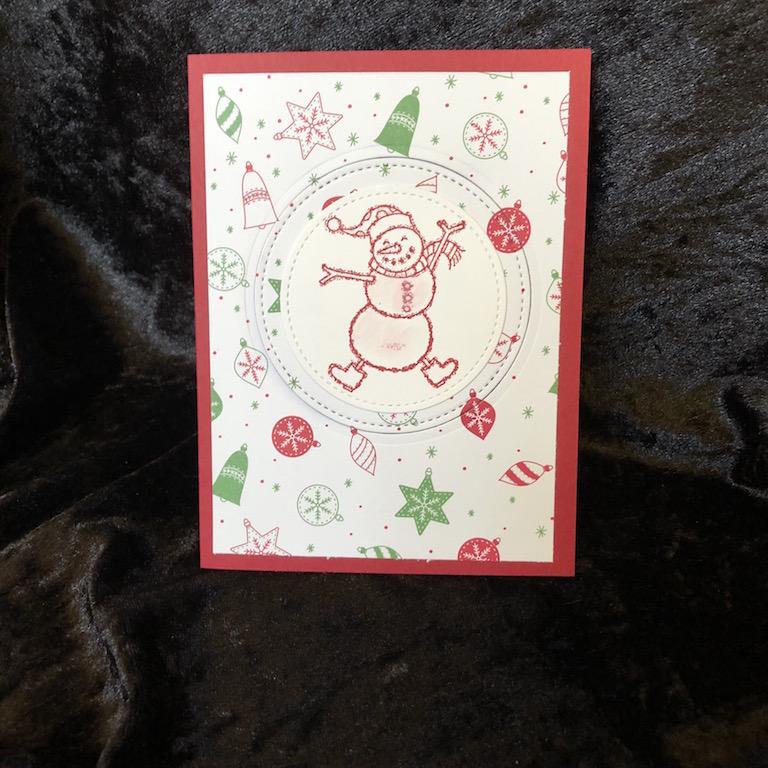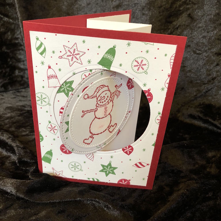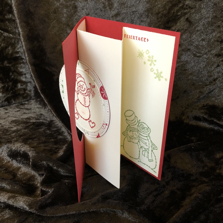 Für dieses Kartenformat bot sich der tanzende Schneemann sofort an. Der braucht einfach ein bisschen Bewegung in der Karte.