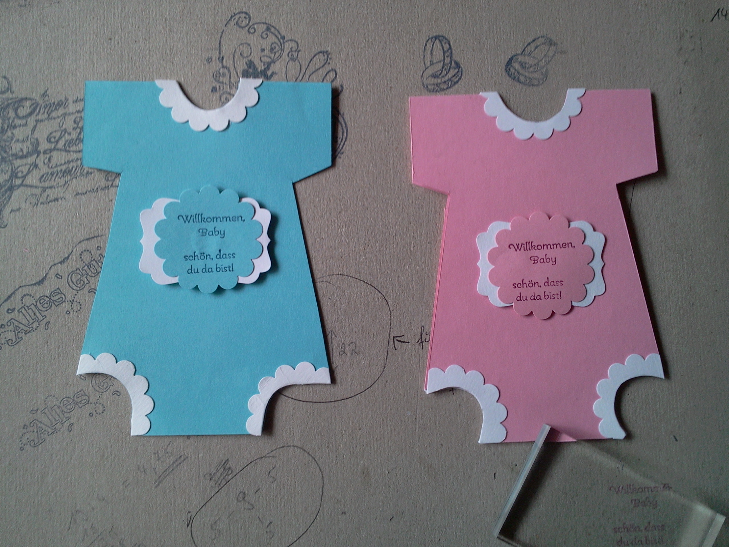 jetzte habe ich euch diese Woche zwei Trauerkarten präsentiert. Nun will ich euch noch eine Baby-Karte zeigen. Den Body habe ich mal bei Ebay gesehen und schwups die dups nach gebastelt.