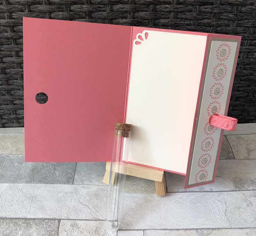 Obenauf befindet sich eine kleine Karte mit dem Schriftzug „Wünsche“, die sich wie eine Easelcard aufstellen lässt – so wird die Box gleich zu einem dekorativen Blickfang.