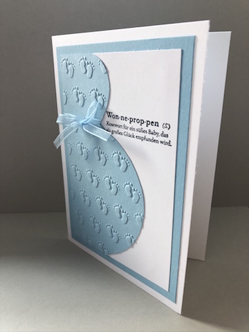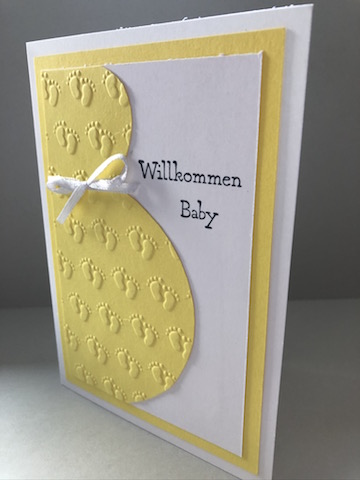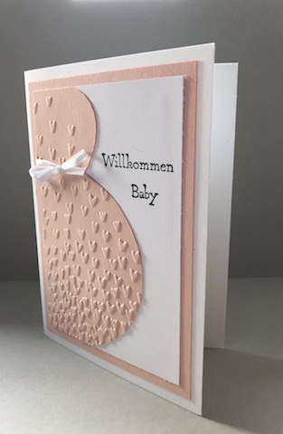Dieses Kartenformat zur Geburt ist bei mir aktuell gefragt. Daher habe ich hier noch eine Variante für dich ganz in Rosa. An der Wand sind die Eckdaten der kleinen Marie angebracht. Auf der Schnur habe ich hier mit Buchstabenperlen den Vornamen des Babys angebracht. So ist die Karte ganz individuell und eine kleine Erinnerung.