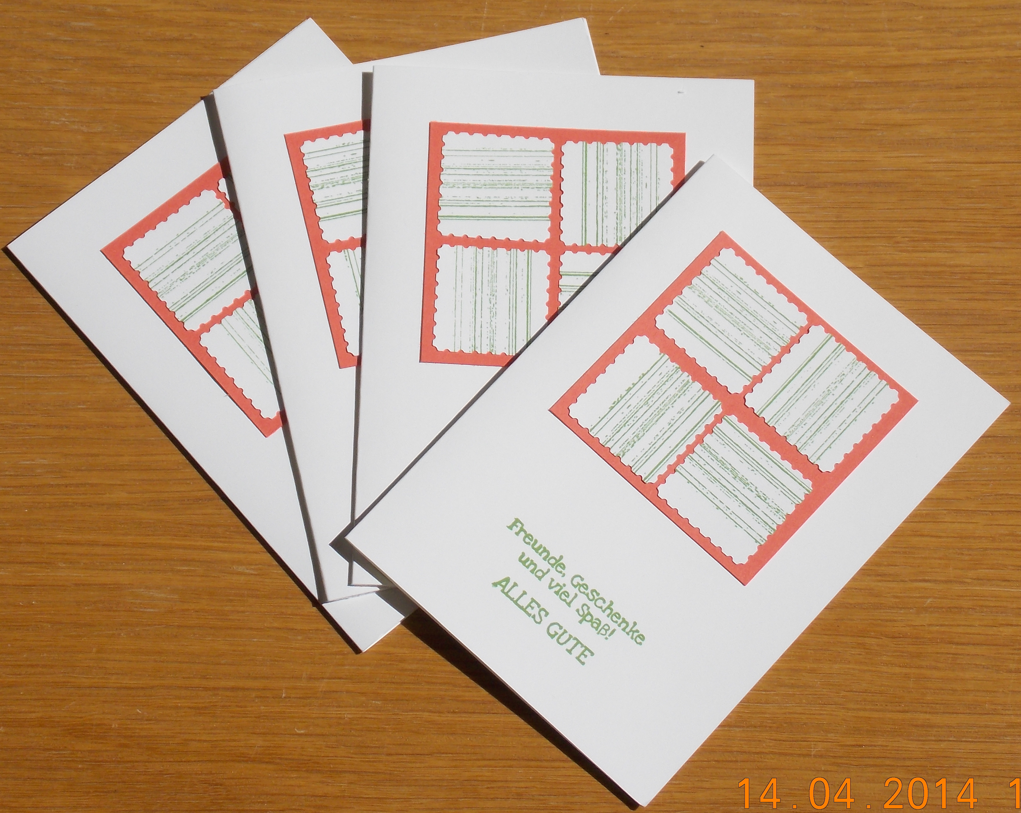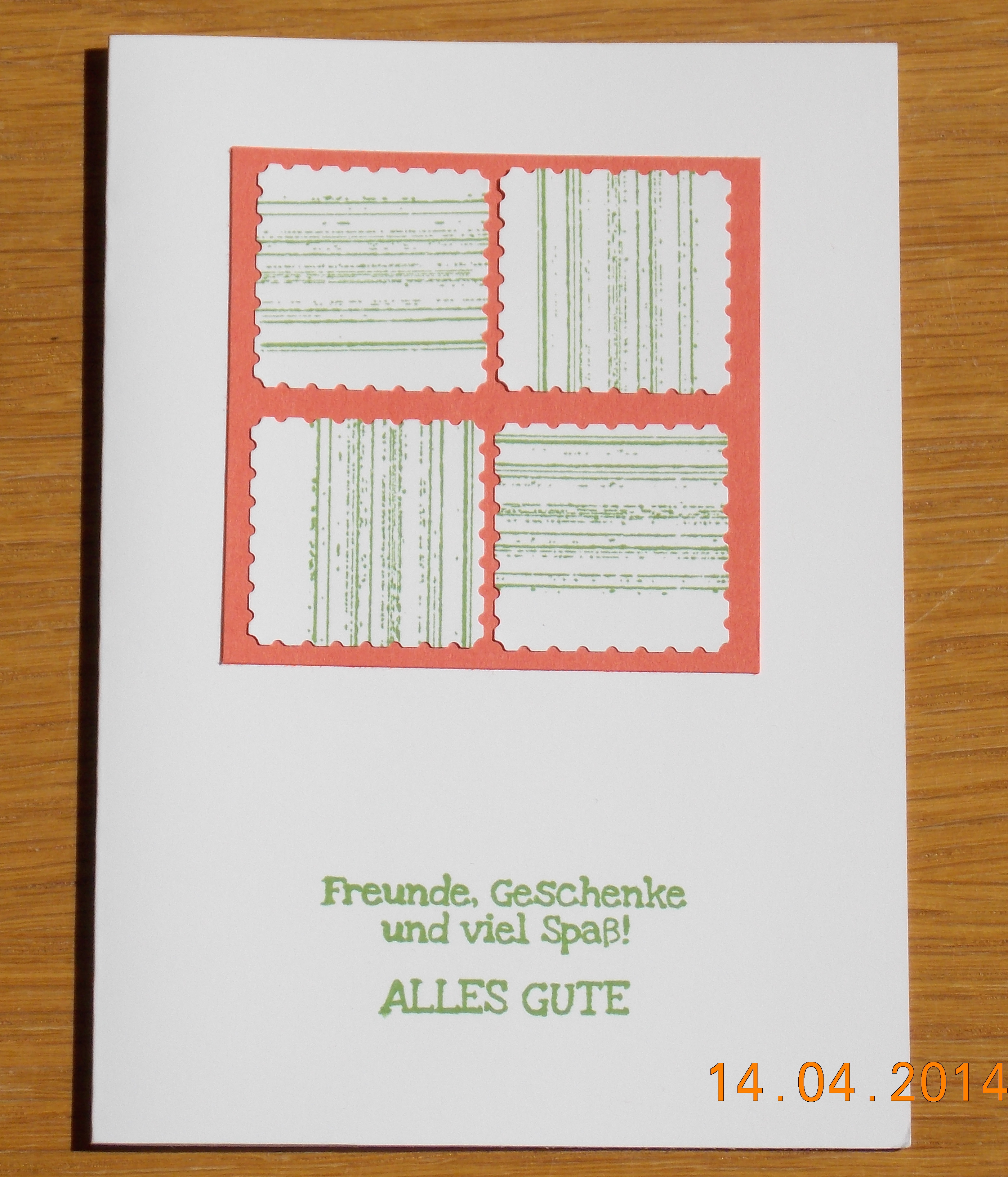 Die zweite Karte sollte frei gestaltet werden. Da ich so ein kleine Symmetrie Fan bin, wurden die Punkte mit System gestempelt. Das Quadrat in Brombeermousse habe ich mit einem Acrylblock gestempelt.