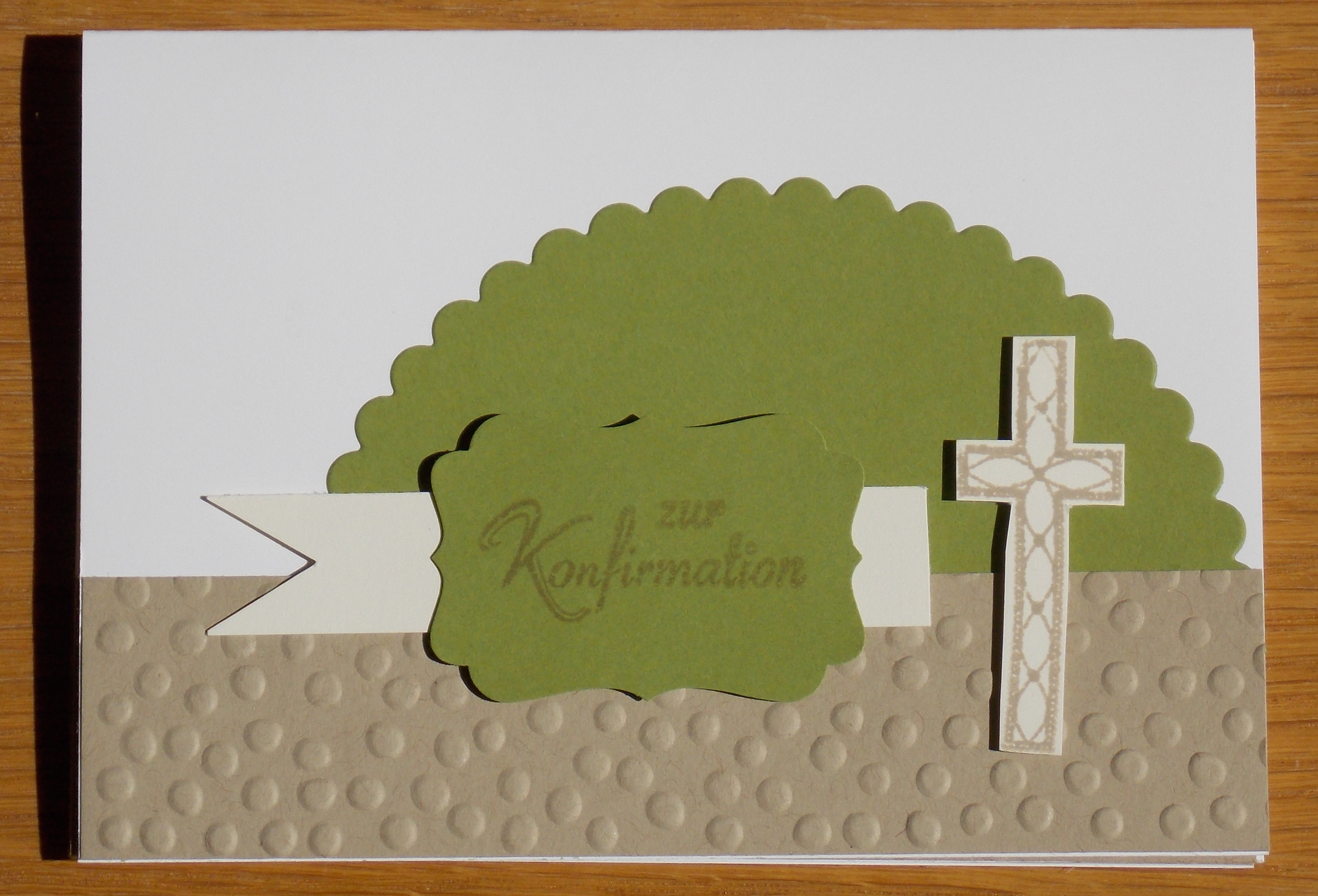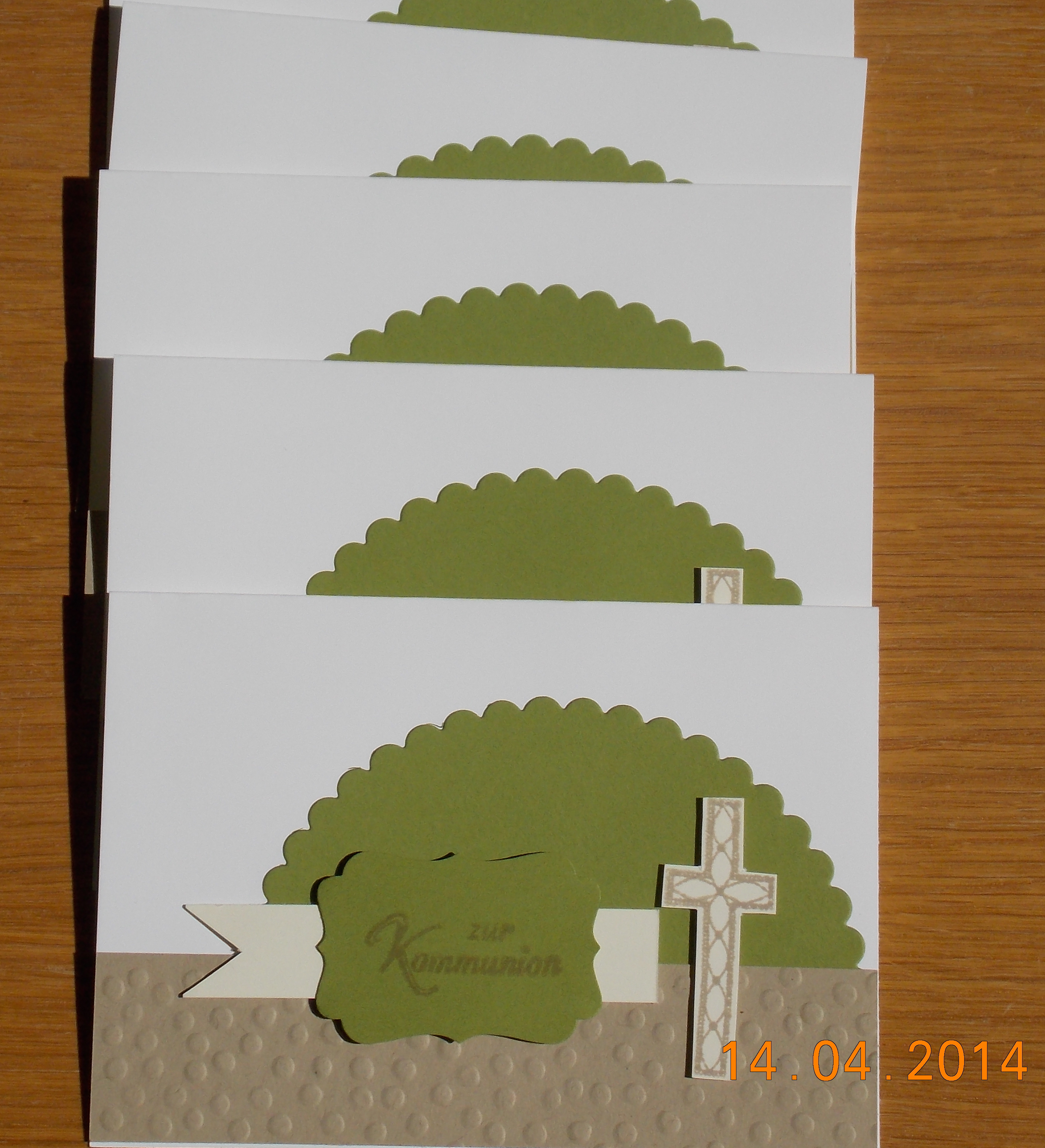 Die Karte ist in Olivegrün, Savanne, Vanille pur und Flüsterweiß gehalten. Und natürlich sowohl in katholischer als auch in evangelischer Ausführung bei mir erhältlich.