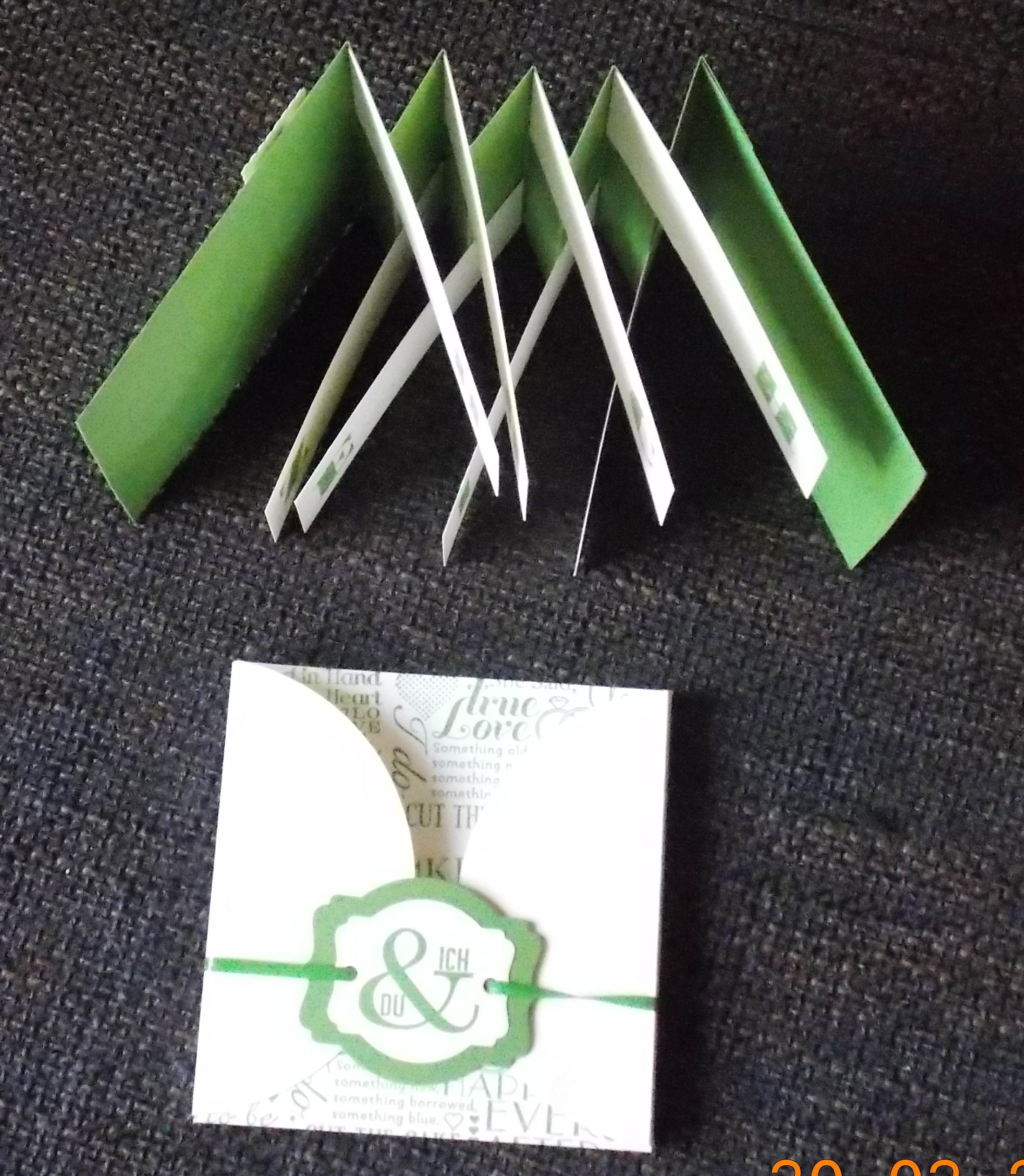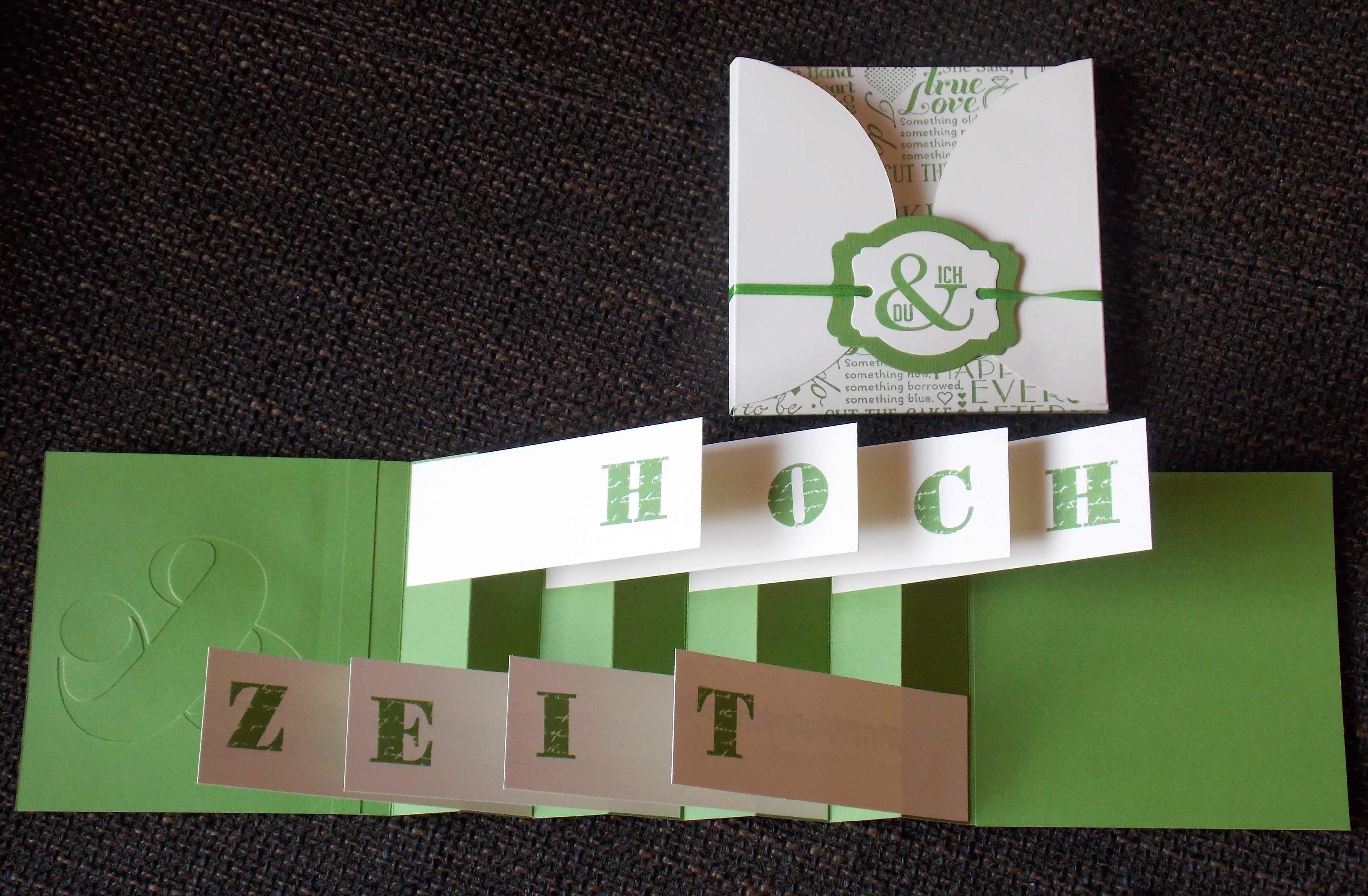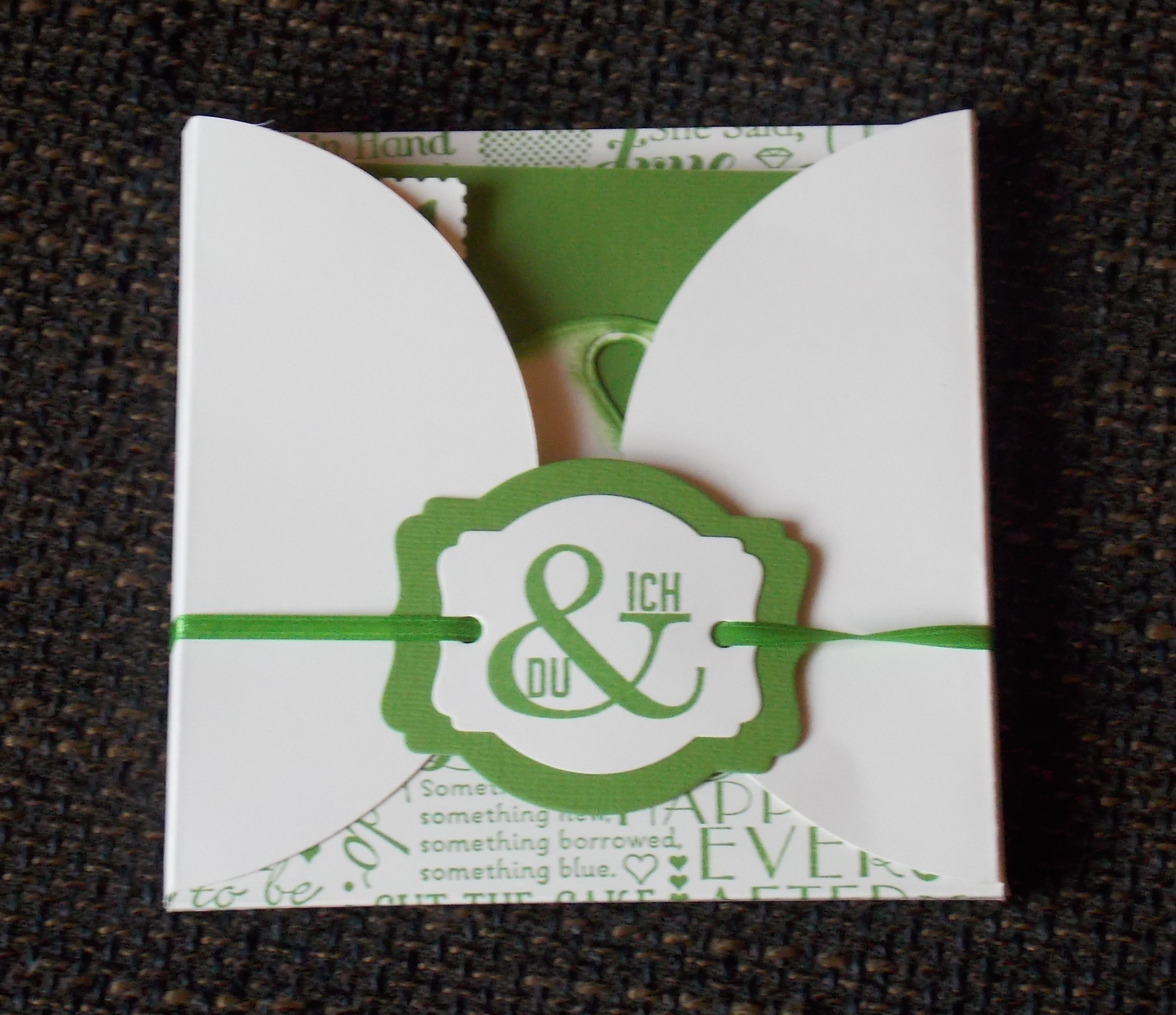 Den Umschlag habe ich mit Hilfe des neuen Kreisschneiders rucki zucki gefertigt. Geht viel schneller als mit dem Zirkel und der Schere, wie ich es für 60 Hochzeitseinladungskarten gemacht hatte. Also nehme ich jetzt gerne größere Aufträge mit dieser Art Umschlag / Karte an.