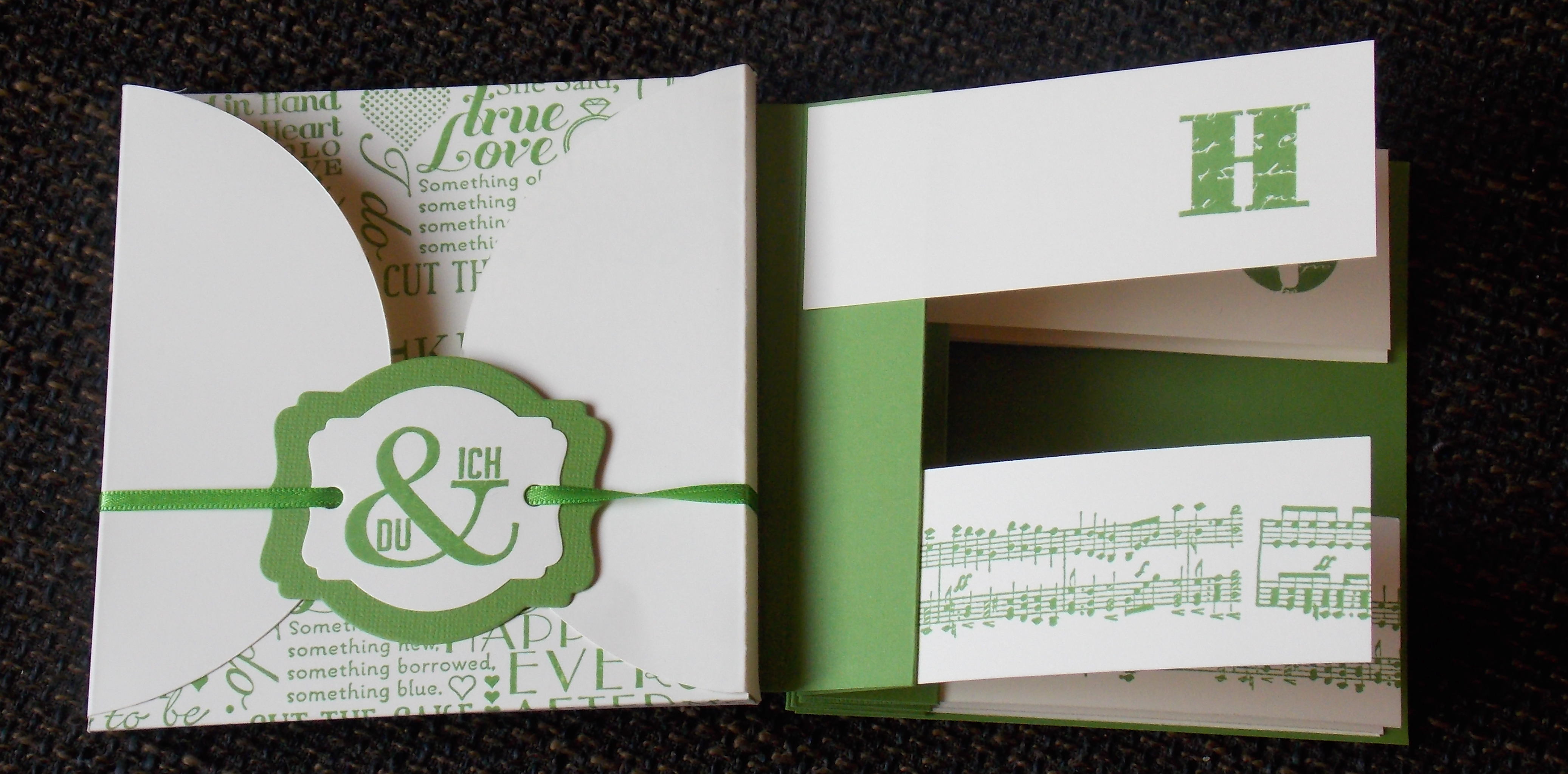 Das besondere der Karte ist hier zu sehen. Der eine oder andere Buchstabe musste mehrfach gestempelt werden, bis ich mit meinem Werk zufrieden war und endlich kleben konnte.