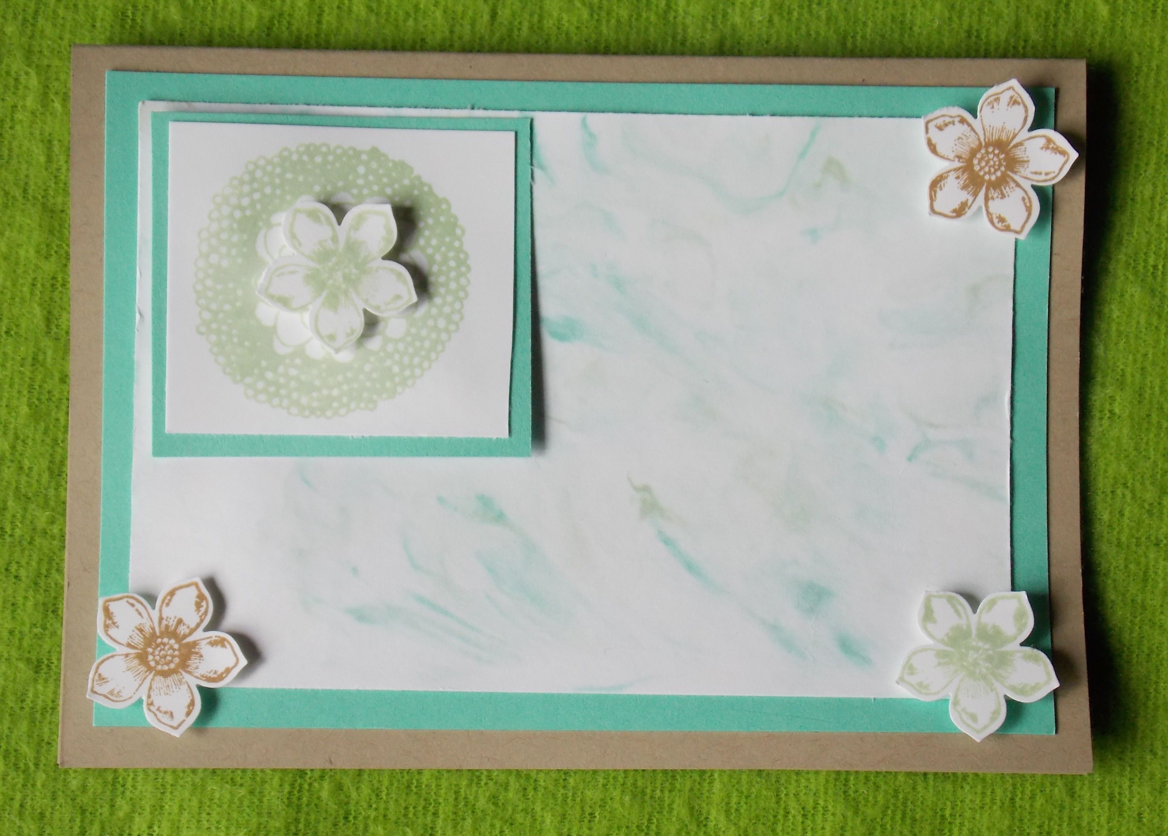 Ich konnte einfach das neue Brombeermousse Papier einfach nicht in den Mülleimer werfen. Und habe versucht das Negativ zu einer Karte zu verwursteln. Als Akzente dienen kleine Blüten in Waldmoos mit einer cremefarbenen Perle. Den Hintergrund habe ich in Waldmoos und Brombeermousse gestaltet. Das Stempelset erkennt man sofort „Gorgeous Grunge“. Das Set muss man einfach haben.