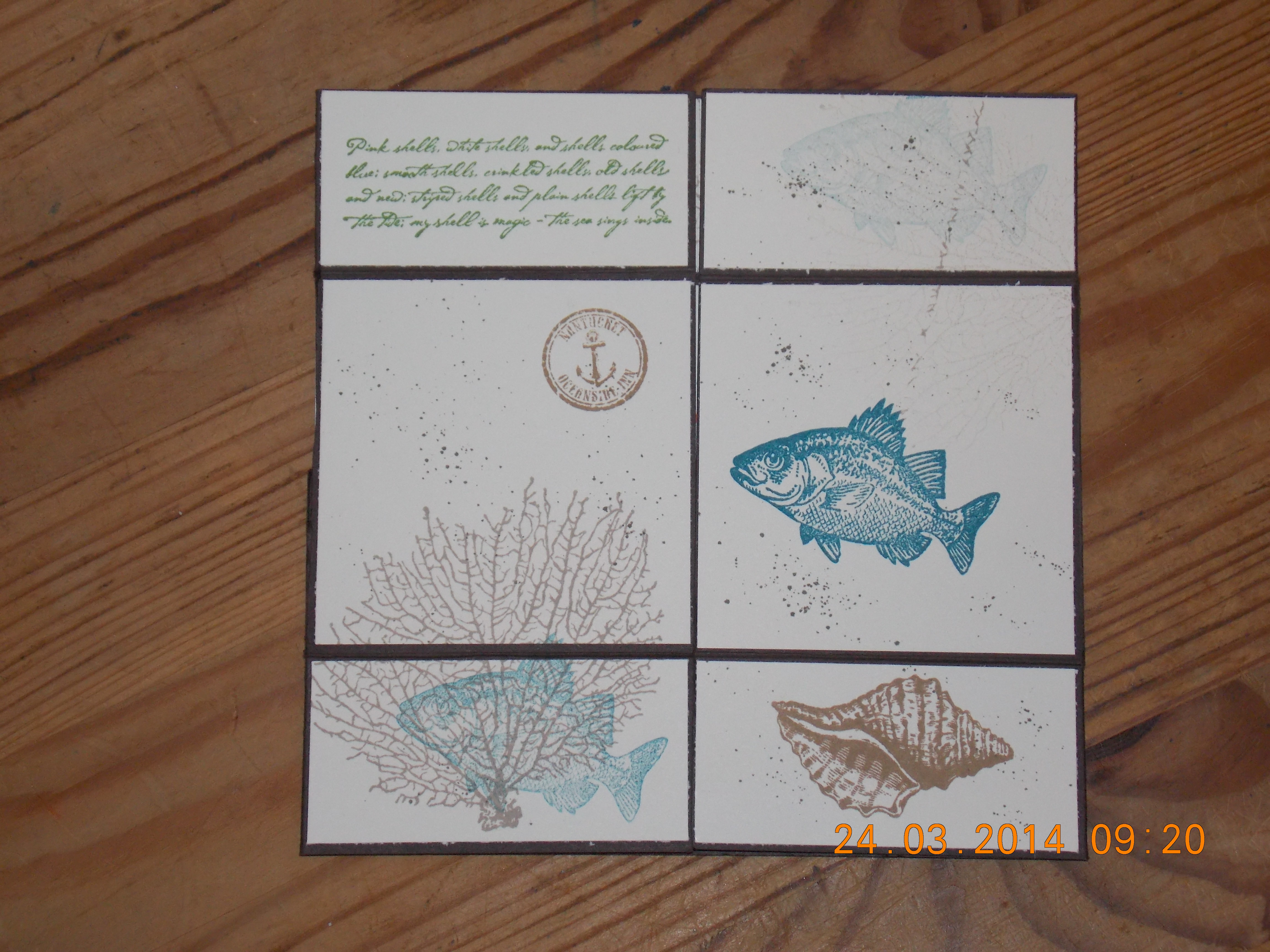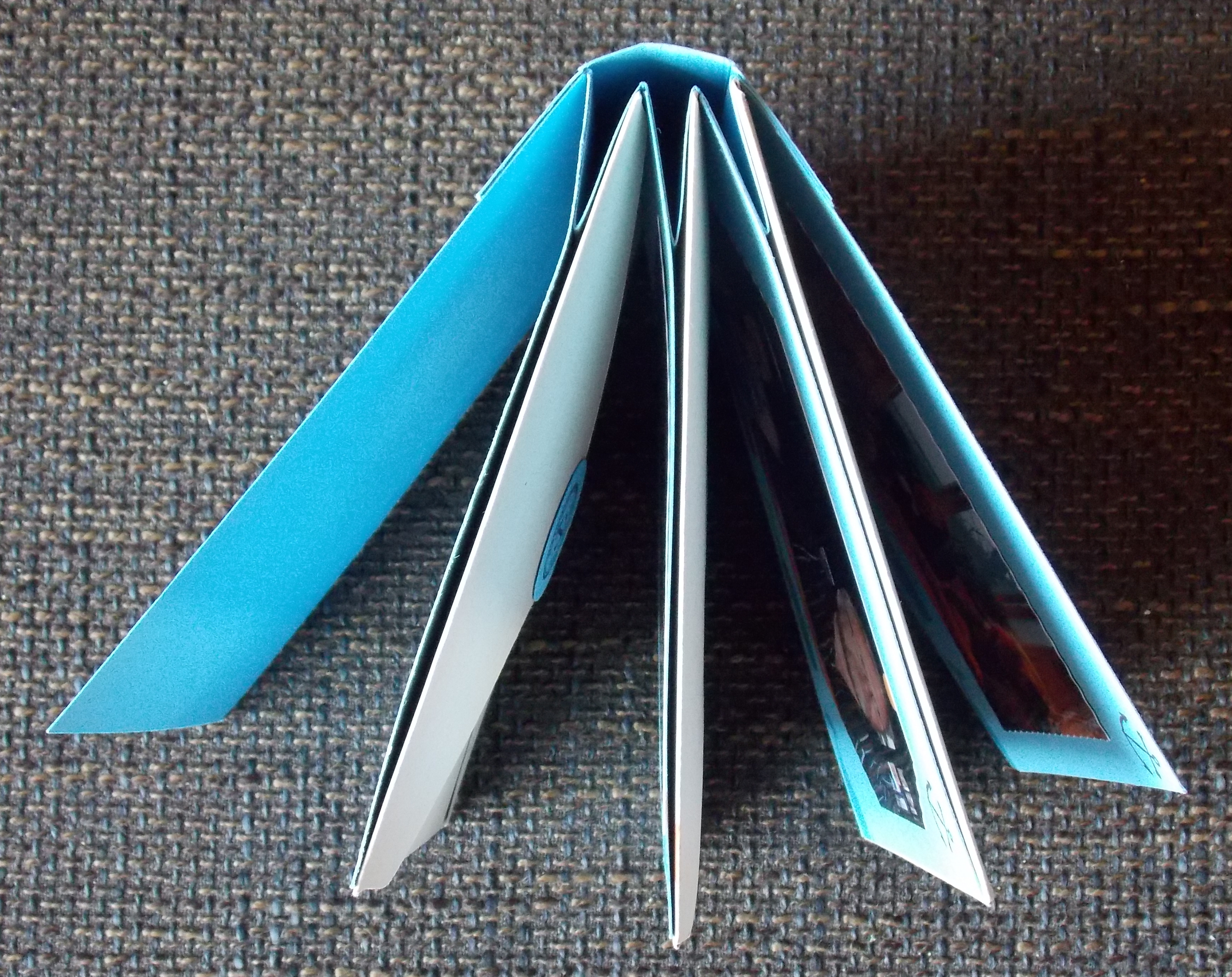 Im mittleren Teil könnte man ein großes Foto platzieren, dass man zuvor in vier Einzelteile zerlegt, so dass es wie oben im Bild den Platz von den bestempelten Seiten einnimmt. Auf die jeweilige Rückseite passt jeweils ein kleines Bild oder etwas ähnliches. Man kann dieses Album auch wunderbar als Karte zu einem besonderen Anlass gestalten. Es ist viel Platz für liebe Grüße und es lässt sich sehr gut ein kleiner Umschlag mit Geld oder Gutschein integrieren. Für mich ein sehr vielfältig einsetzbares Projekt.