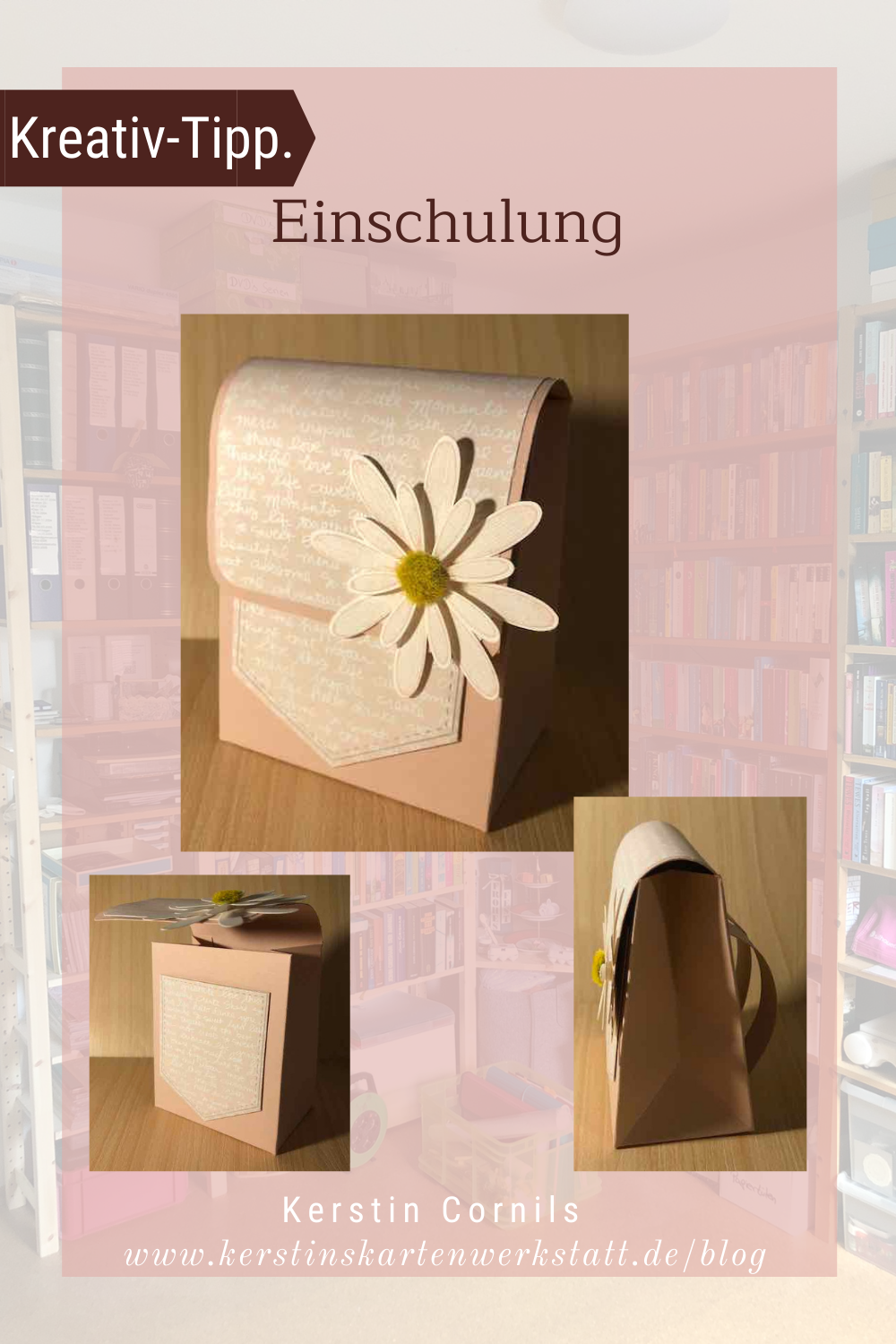 Mit dem Falz- und Stanzbrett für Geschenktüten lassen sich nicht nur kleine und größere Tüten aus Papier basteln, sondern auch diese kleinen süßen Schultaschen zur Einschulung. In ähnlicher Form durftest du diese kleinen Schulranzen schon öfter auf meinem Blog bewundern.