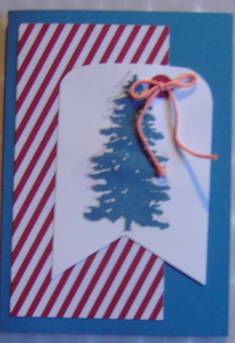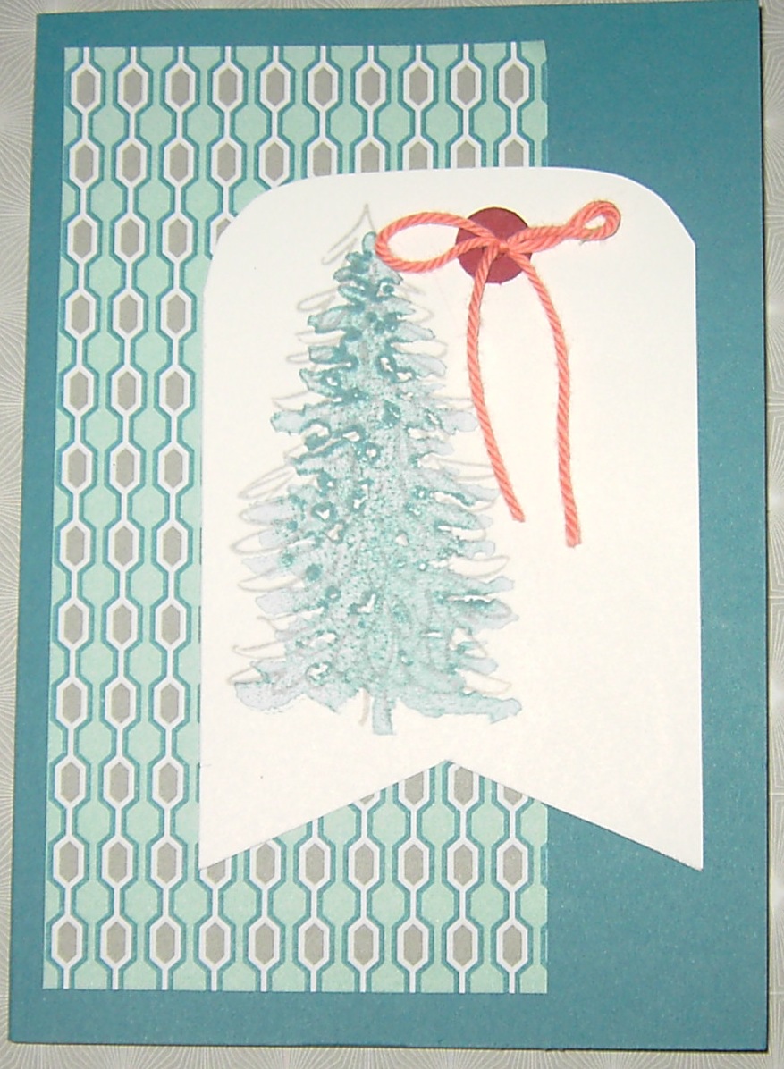 Oben habe ich die Silhouette des Tannenbaum in Espresso auf Transparentpapier gestempelt. Und tada …