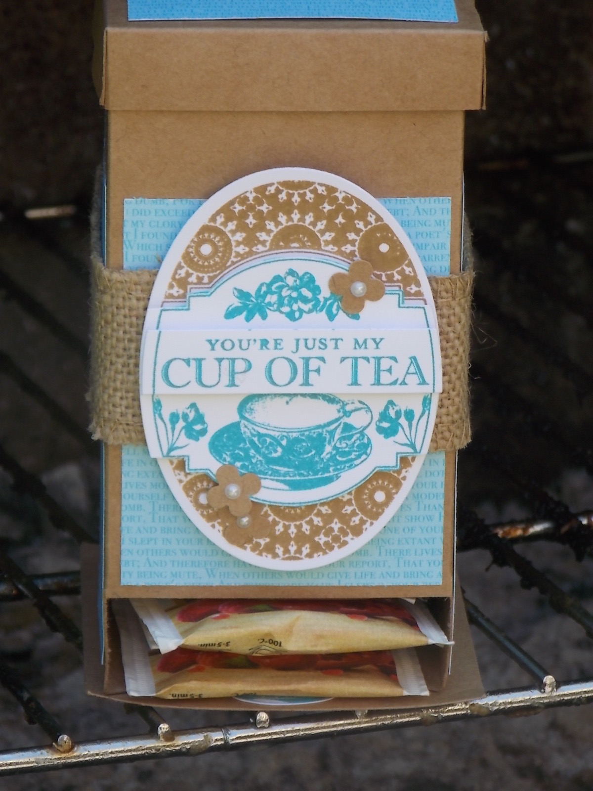 Ich habe leider vergessen eine Innenaufnahme zu machen. Die Box bietet Platz für 4 Teebeutel und ein paar Schokoriegel. Ich hatte mir direkt ein paar mehr gemacht, doch schwups waren sie auch schon weg. Nun heißt es bald ran ans Werk und neue Zaubern. Ich finde diese kleinen Mitbringsel einfach immer wieder gut.
