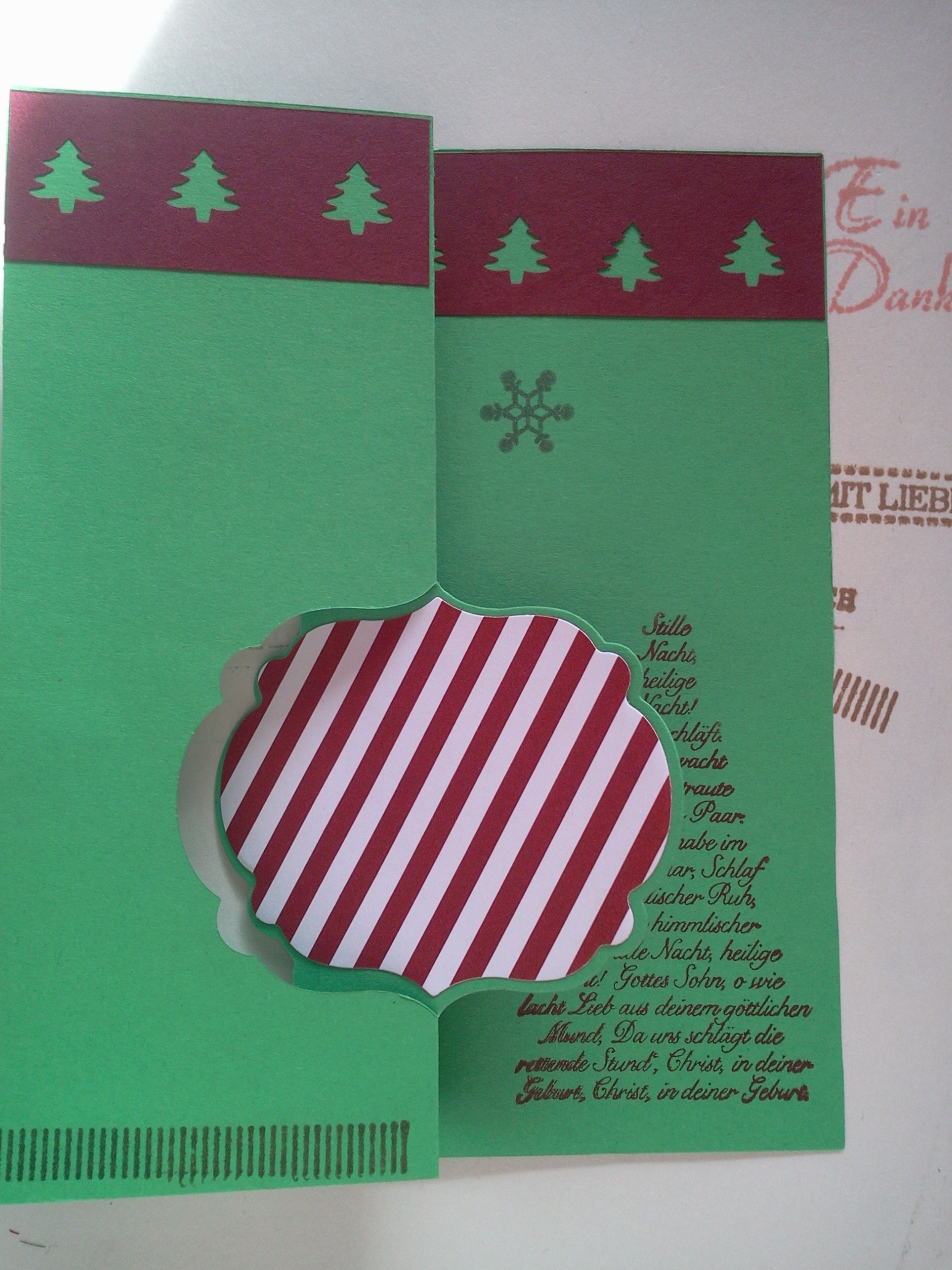Den Stempel „Öffnen erst an Heiligabend“ kann man auch ganz gut als Siegel für die Weihnachtspost verwenden. Hier für meine Thinlits-Karte. Nur für euch habe ich die Karte schon vorher geöffnet ;-)