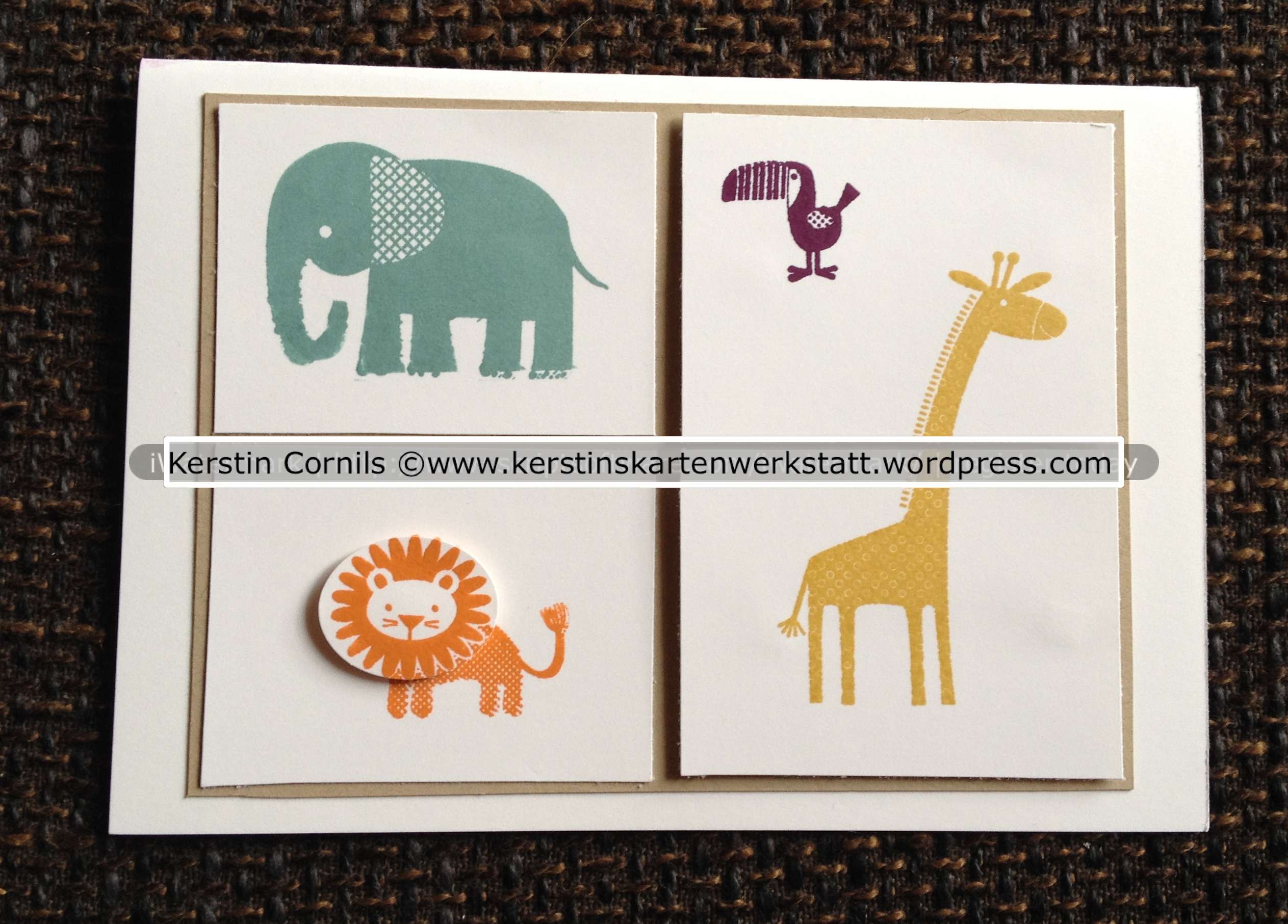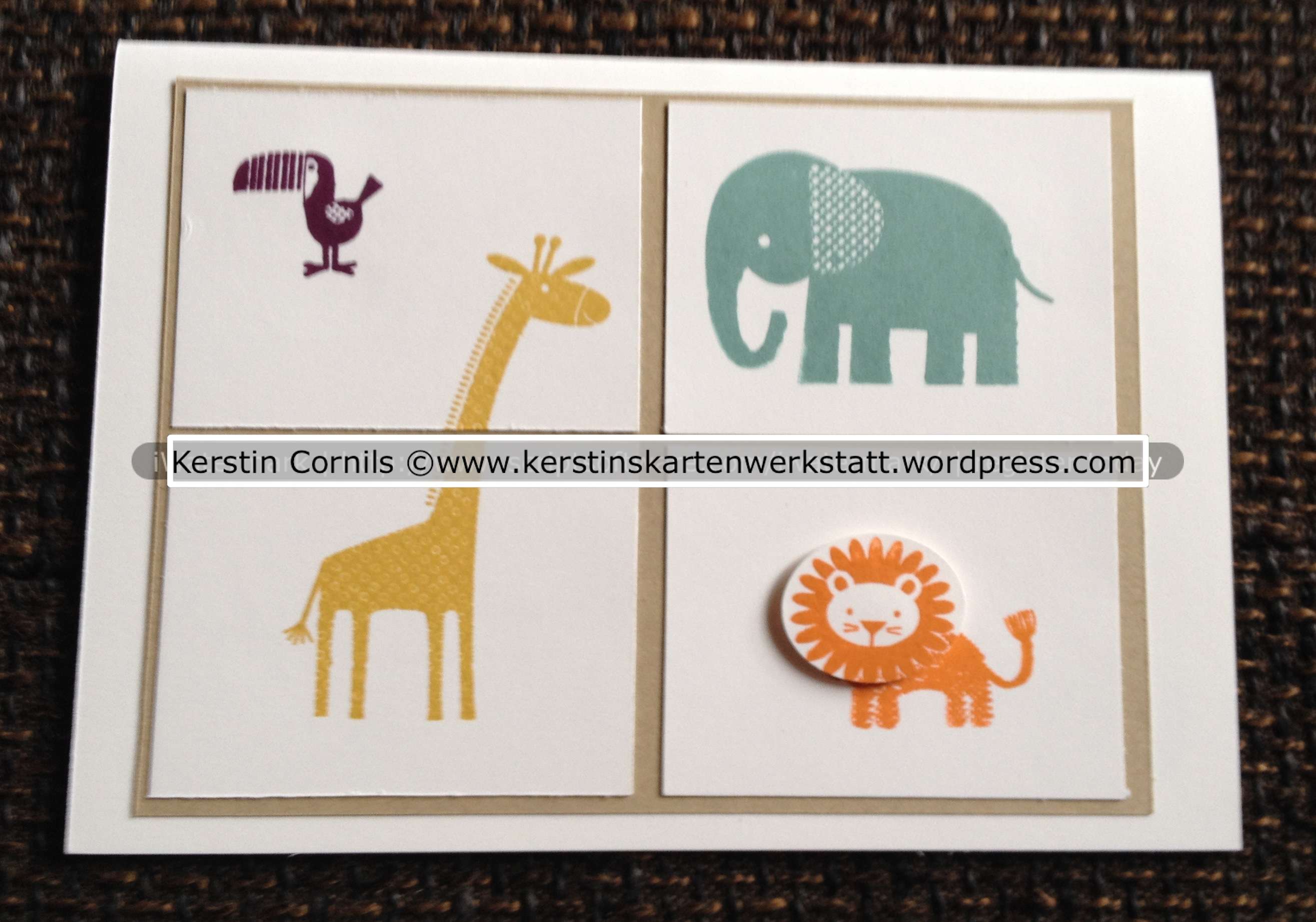 Die Wahl der Tiere und Farben lassen natürlich keinen Rückschluss auf das Brautpaars zu, sondern sind frei gewählt. Die beiden Tiere harmonisieren in ihrer Größe einfach hervorragend. Und außerdem schauen sie sich an, welches mein Hauptkriterium war für das Experiment „Zoo Babies“ und Hochzeitskarte.
